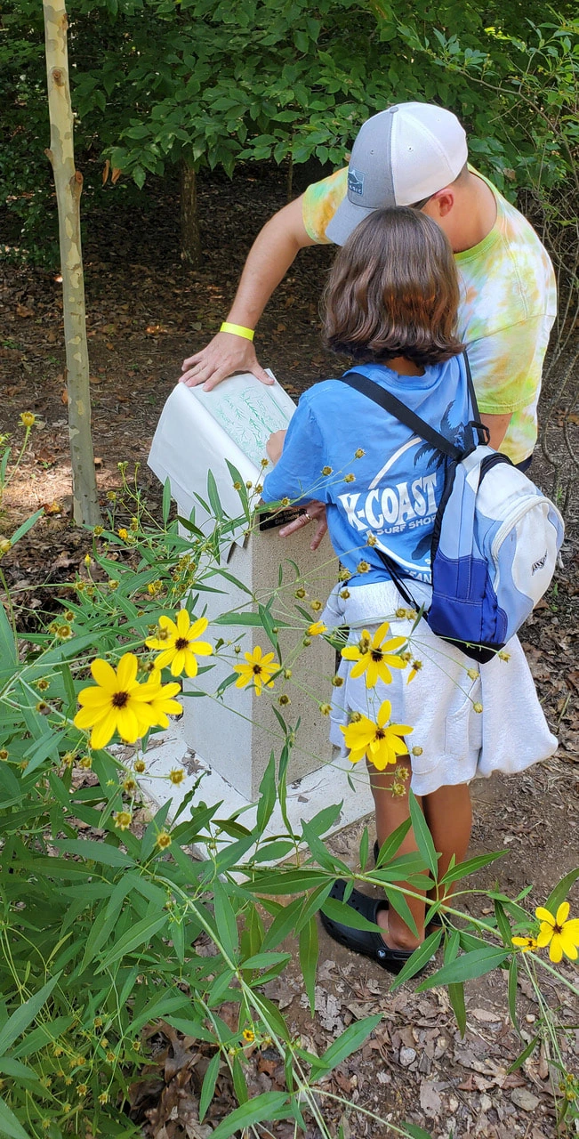 Once the plaques were made then it was time to design their stands and labels, this was all Perry's expertise as a professional sculptor.  Working with a local stone cutter, Perry worked with our client to select the stone and finalize the design to insure that the plaques would be easily accessible to all and withstand the weather since they would be installed along a nature trail. Thanks to Perry and our good friend and Perry's assistant, Melvin Johnson, the plaques were installed just in time for Ann Marie Gardens' big fall event: ArtFest.